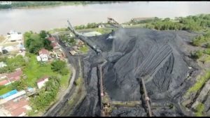 Penampungan batu bara perusahaan ini memang strategis. Lokasinya hanya berjarak 100 meter berseberangan dengan Sungai Mahakam. Disitu sudah siap dua kapal tongkang penuh muatan batu bara bersandar di tepian dermaga jeti perusahaan.